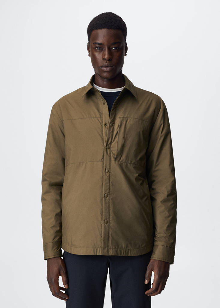 Padding made of Sofeelate©, an insulating and highly thermo-regulating material composed of extra-fine fibres that help retain heat and make the garment lightweight and comfortable. Water-repellent: The durable finish of this garment protects against light rain, repelling contact with water and raindrops. Thermoregulating: This fabric offers optimal breathability to keep you at a stable temperature. Shirt-style collar. Long sleeve. Press stud fastening. Inner lining. Inner pocket. The model is 187 cm tall and is wearing a size M