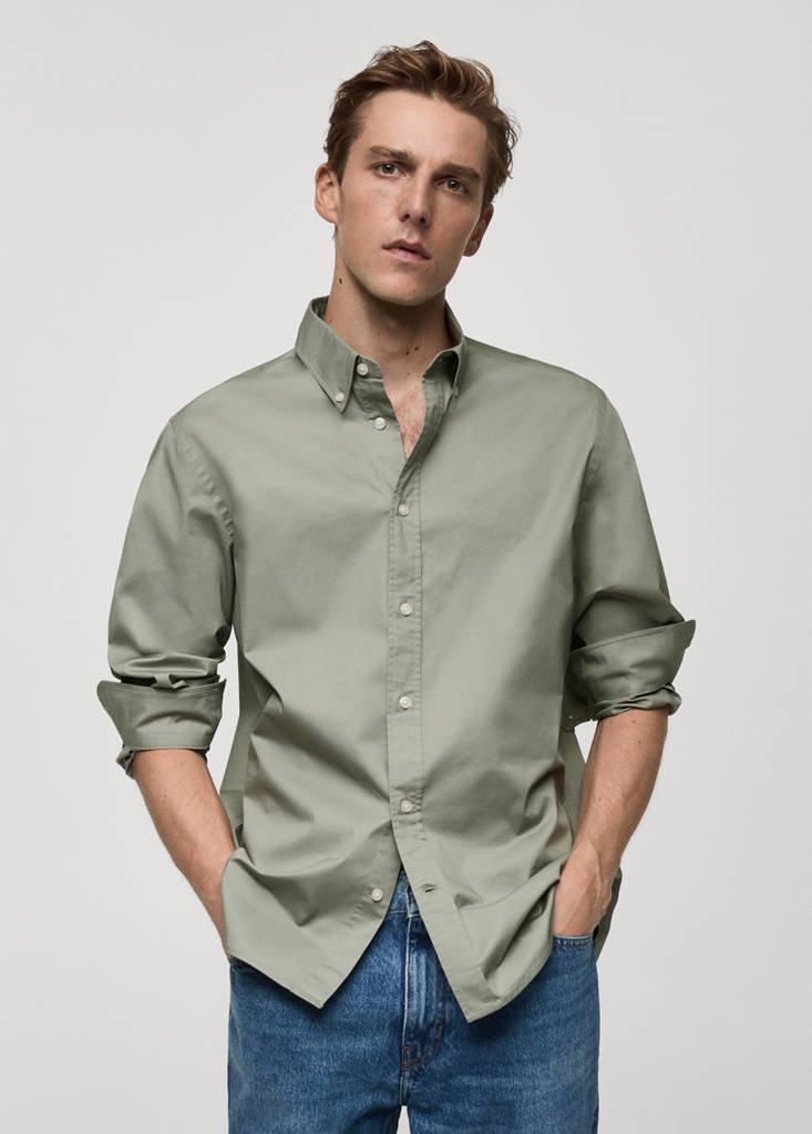 Regular fit cotton shirtPrice historyInitial price struck through [1 199 Kč ]1 199 KčSecond price struck through [959 Kč ]959 KčCurrent price [359 Kč ]359 Kč-70%Select a colourKhakiThe model is wearing size L and is 185cm tall.Select your sizeXSSNot available. I want it!MNot available. I want it!LNot available. I want it!XLNot available. I want it!XXLNot available. I want it!MeasurementsAddRegular fit. Slightly elastic cotton fabric. Long sleeves with buttoned cuffs. Front closure with buttons. Rounded base. Classic collarDetails, composition and careStore availability