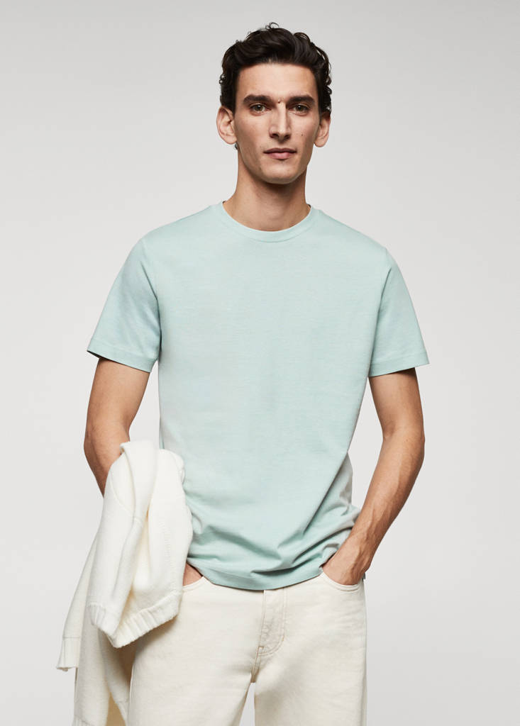 Essential cotton-blend T-shirtPrice historyInitial price struck through [299 Kč ]299 KčCurrent price [239 Kč ]239 Kč-20%Select a colourAqua GreenThe model is wearing size M and is 188cm tall.Select your sizeXSNot available. I want it!SNot available. I want it!MNot available. I want it!LNot available. I want it!XLNot available. I want it!XXLNot available. I want it!DimensionsNotify meThe colour brown is exclusive online. Slim fit. Round neck. Short sleeves. Straight hem. 100% cotton fabricDetails, composition and careStore availability