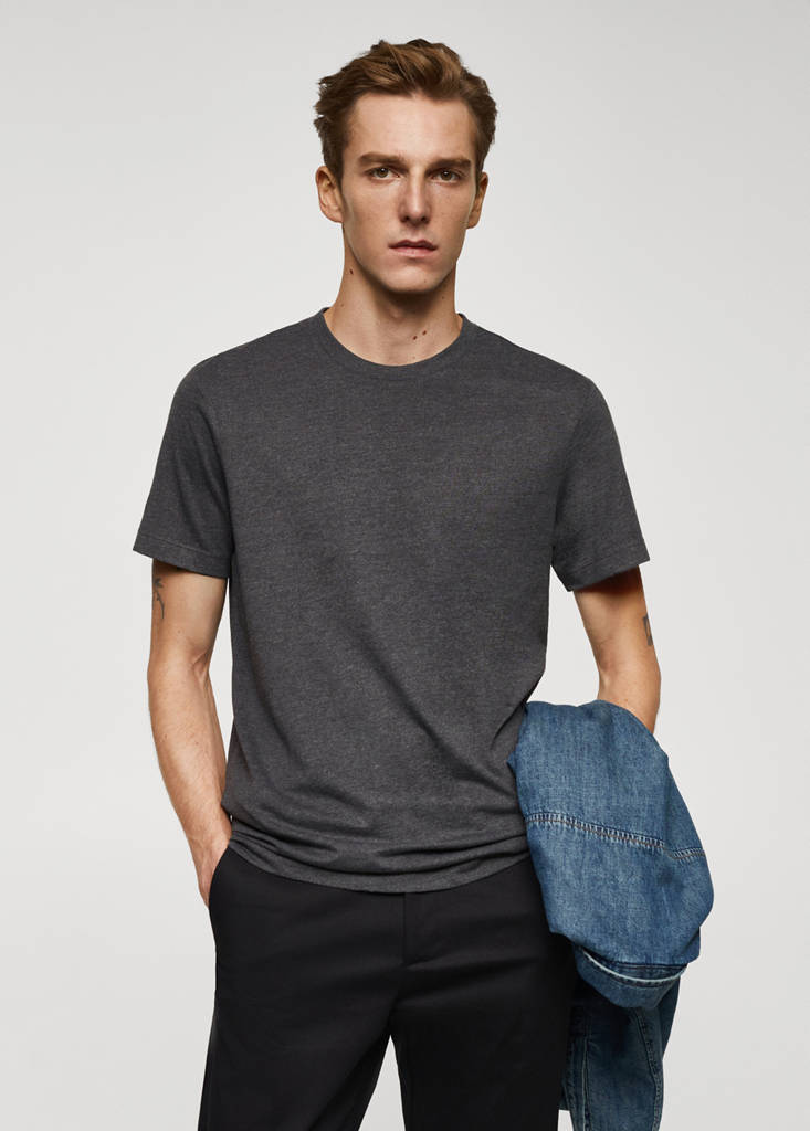 Essential cotton-blend T-shirtPrice historyInitial price struck through [299 Kč ]299 KčCurrent price [239 Kč ]239 Kč-20%Select a colourCharcoalThe model is wearing size M and is 185cm tall.Select your sizeXSNot available. I want it!SNot available. I want it!MNot available. I want it!LNot available. I want it!XLNot available. I want it!XXLNot available. I want it!DimensionsNotify meThe colour brown is exclusive online. Slim fit. Round neck. Short sleeves. Straight hem. 100% cotton fabricDetails, composition and careStore availability