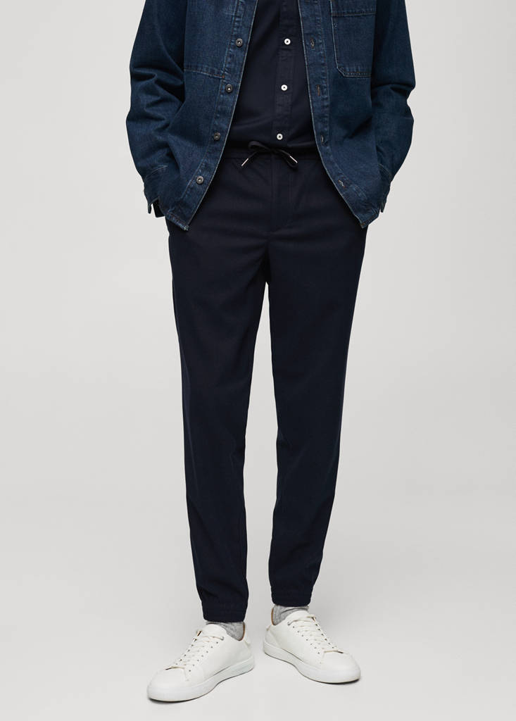Cotton pants with adjustable drawstringPrice historyInitial price struck through [1 199 Kč ]1 199 KčSecond price struck through [959 Kč ]959 KčCurrent price [839 Kč ]839 Kč-30%Select a colourDark NavyThe model is wearing size 42 and is 185cm tall.Select your size38Not available. I want it!40Not available. I want it!42Not available. I want it!44Not available. I want it!46Not available. I want it!DimensionsNotify meSlim fit. Cotton fabric. Adjustable drawstring closure. Hem with elastic band. Belt loops. Standard designDetails, composition and careStore availability