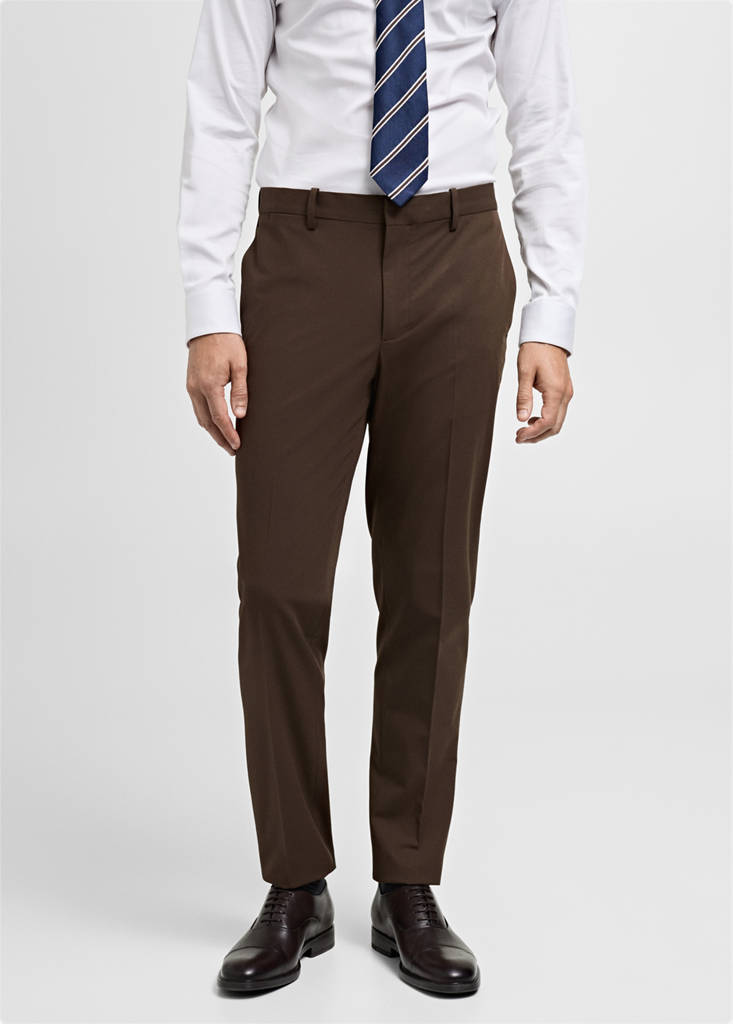 Tailoring collection. Super slim fit. Comfort Stretch: Stretch fabric for added comfort. Fabric made of recycled polyester, a durable, breathable, easy-care fibre that provides comfort in use. Mid-rise. Concealed button, hook and zip fastening. Belt loops. Two side pockets. Concealed coin pocket at hip level. Two welt pockets with button at the back. Pressed crease detail at the front and back. Comfort: Horizontal and vertical stretch fabric for added comfort