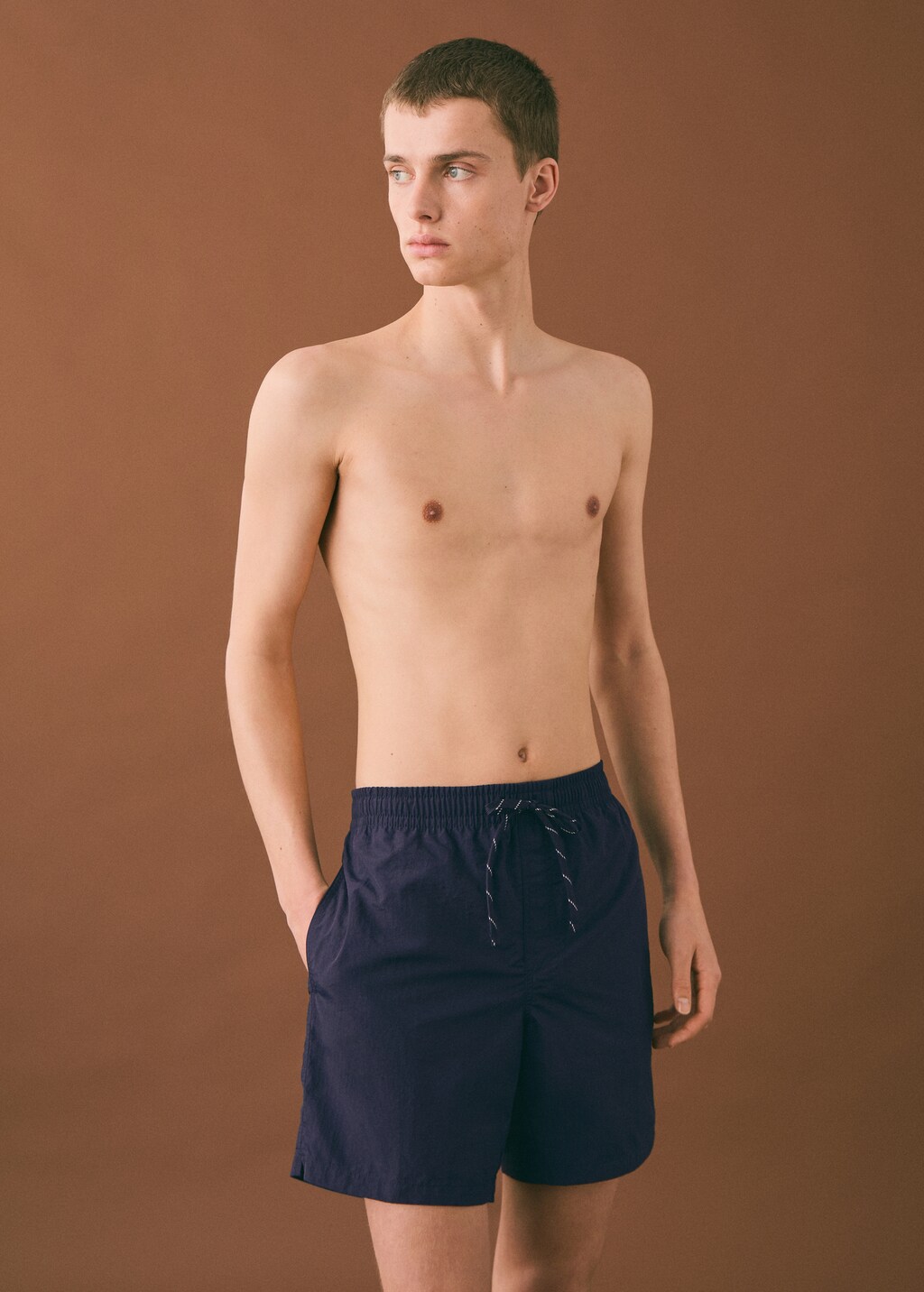 Textured fabric. Straight Design. Short design. With inner lining. Elastic waist with drawstring.