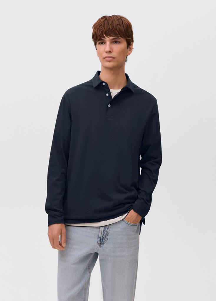 Crafted from 100% cotton fabric, this garment features a straight and plain design. The polo collar with a button fastening adds a classic touch, while the long sleeves complete its timeless style