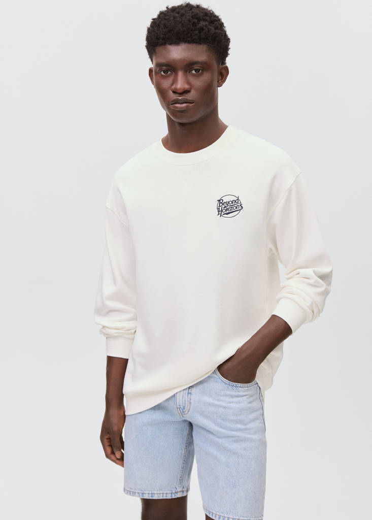 100% cotton fabric. Straight design. Embroidered design. Printed design. Round neck without hood. Long sleeves. Embroidery on the front. Text printed on the back