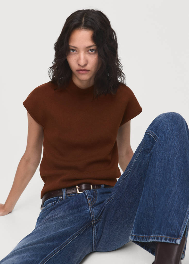 Short-sleeved fine-knit sweaterPrice historyInitial price struck through [799 Kč ]799 KčSecond price struck through [639 Kč ]639 KčCurrent price [549 Kč ]549 Kč-31%Select a colourBrownThe model is wearing size S and is 179cm tall.Select your sizeXSSMLast few items!LXLLast few items!MeasurementsAddFine knit fabric. Fitted design. High collar. Short sleeves. No Fastening. No FasteningDetails, composition and careStore availability
