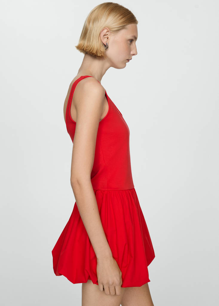 Cotton blend fabric. A-line design. Short design. Combined design. Square neckline. Sleeveless. Thin straps. No Fastening. Party, ceremony and communion collection. Festival Season. Fitted design