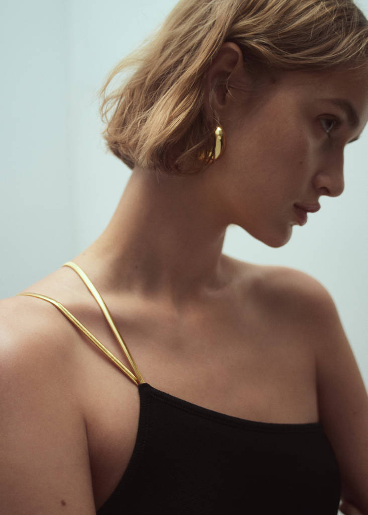 Dazzle with every step in this asymmetrical party piece. The metallic double thin straps add a touch of sophistication, while the unique design enhances your elegance. Fine knit fabric. Asymmetric design. Long design. Asymmetrical neckline. Double thin straps. Metallic detail. No Fastening. Party, ceremony and communion collection. Fitted design. This garment belongs to our event collection, designed to make you the perfect guest at any party, wedding or ceremony