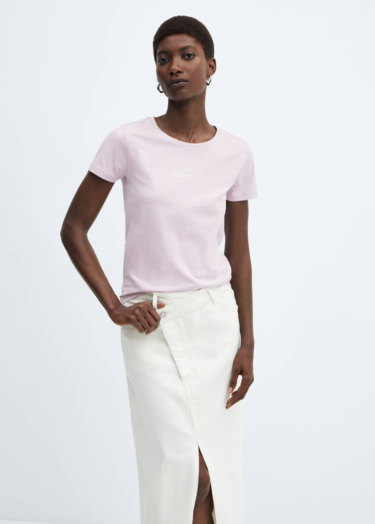 Logo cotton T-shirtPrice historyInitial price struck through [249 Kč ]249 KčCurrent price [169 Kč ]169 Kč-32%Select a colourLavenderThe model is wearing size S and is 175cm tall.Select your sizeXSNot available. I want it!SNot available. I want it!MNot available. I want it!LNot available. I want it!XLNot available. I want it!XXLNot available. I want it!DimensionsNotify meStraight design. Round neck. Short sleeves. Logo print. Mango logo print. 100% cotton fabric. Knit fabric. No Fastening. Logo detail. No FasteningDetails, composition and careStore availability