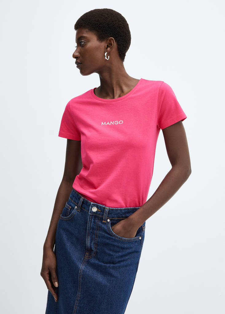 Logo cotton T-shirtPrice historyInitial price struck through [249 Kč ]249 KčCurrent price [169 Kč ]169 Kč-32%Select a colourFuchsiaThe model is wearing size S and is 175cm tall.Select your sizeXSNot available. I want it!SNot available. I want it!MNot available. I want it!LNot available. I want it!XLNot available. I want it!XXLNot available. I want it!DimensionsNotify meStraight design. Round neck. Short sleeves. Logo print. Mango logo print. 100% cotton fabric. Knit fabric. No Fastening. Logo detail. No FasteningDetails, composition and careStore availability