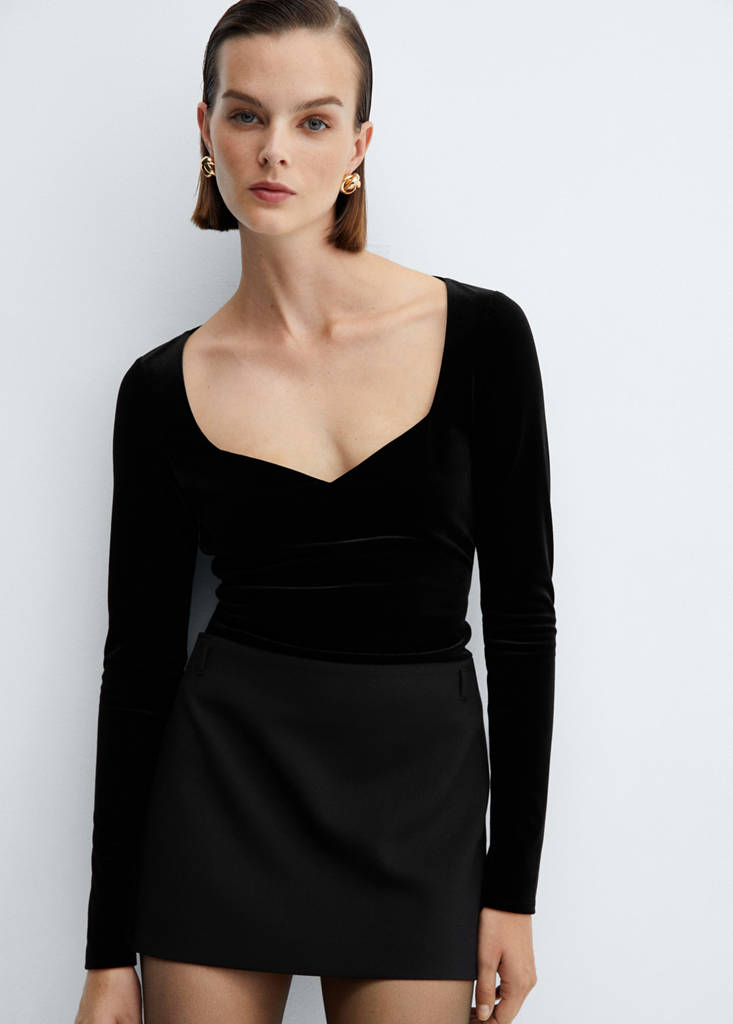 Velvet fabric, fitted design, sweetheart neckline, long sleeve, unclosed, inner lining, party and events collection.
