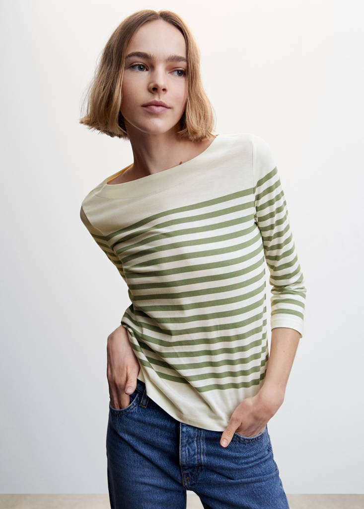 Striped cotton T-shirtPrice historyInitial price struck through [399 Kč ]399 KčCurrent price [269 Kč ]269 Kč-33%Select a colourPastel GreenSelect your sizeXXSNot available. I want it!XSNot available. I want it!SNot available. I want it!MNot available. I want it!LNot available. I want it!XLNot available. I want it!XXLNot available. I want it!1XLNot available. I want it!2XLNot available. I want it!3XLNot available. I want it!4XLNot available. I want it!DimensionsNotify me100% cotton fabric. Straight design. Striped print. Off shoulder. Three quarter sleeve. Plus Size AvailableDetails, composition and careStore availability