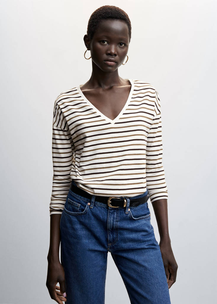 V-neck cotton T-shirtPrice historyInitial price struck through [299 Kč ]299 KčCurrent price [209 Kč ]209 Kč-30%Select a colourOff WhiteSelect your sizeXXSNot available. I want it!XSNot available. I want it!SNot available. I want it!MNot available. I want it!LNot available. I want it!XLNot available. I want it!XXLNot available. I want it!1XLNot available. I want it!2XLNot available. I want it!3XLNot available. I want it!4XLNot available. I want it!DimensionsNotify me100% cotton fabric. Available in plain and patterned. Striped print. Straight design. V-neck. Long sleeve. Plus Size AvailableDetails, composition and careStore availability