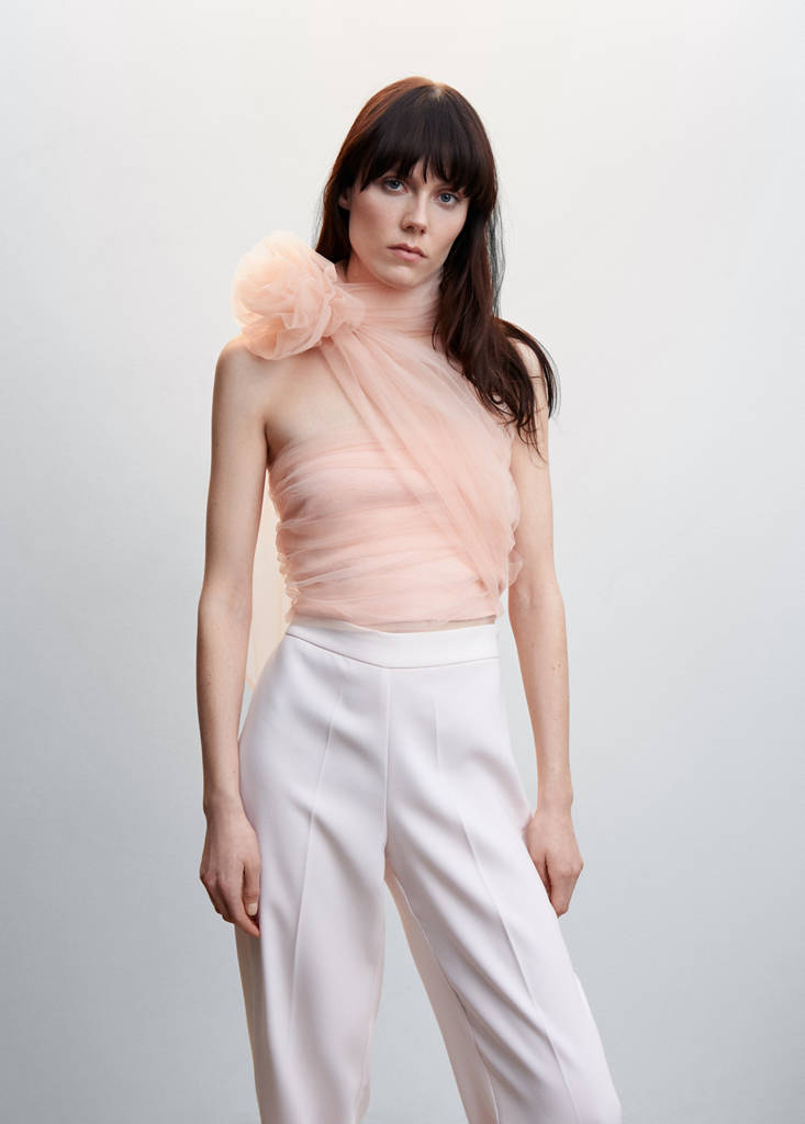 Gauze fabric. Fitted design. Cropped design. Crossover design. Maxi flower. Strapless. Sleeveless. Festival Season