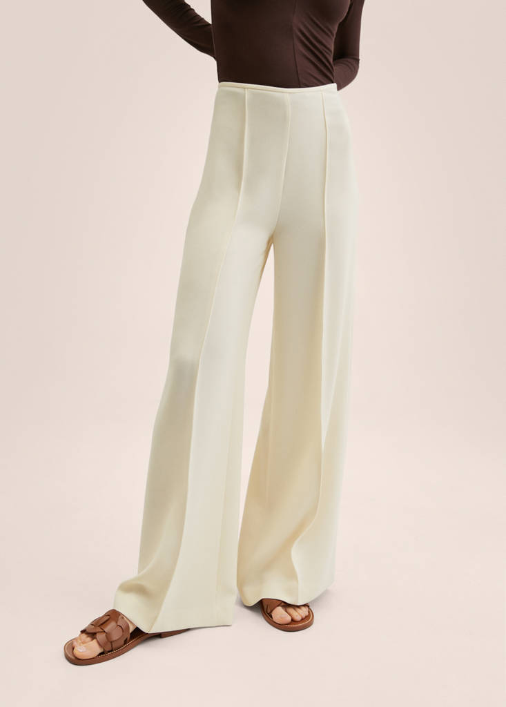 Fluid fabric. Straight design. Mid-rise. Dart detail. Invisible side zip fastening. Party, ceremony and communion collection. High waist. Long design. Long Long. Palazzo design. High Waist. Silhouette Palazzo. Office looks