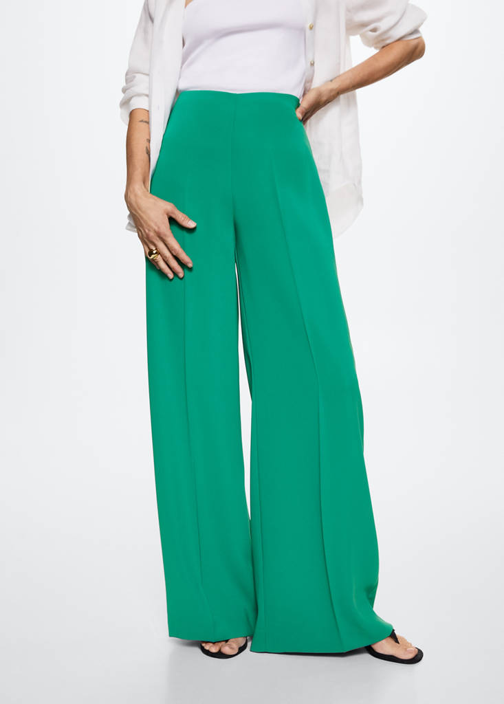 Fluid fabric. Straight design. Mid-rise. Dart detail. Invisible side zip fastening. Party, ceremony and communion collection. High waist. Long design. Long Long. Palazzo design. High Waist. Silhouette Palazzo. Office looks
