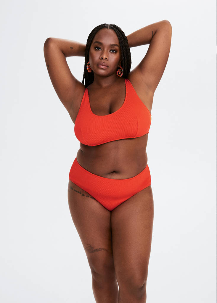 Stoff mit Streifenstruktur. Rundhalsausschnitt. Breite Träger. Herausnehmbare Polsterung. Hakenverschluss. Futter. Ensemble verfügbar. Bademode-Kollektion. Exklusiv Plus. Plus erhältlich