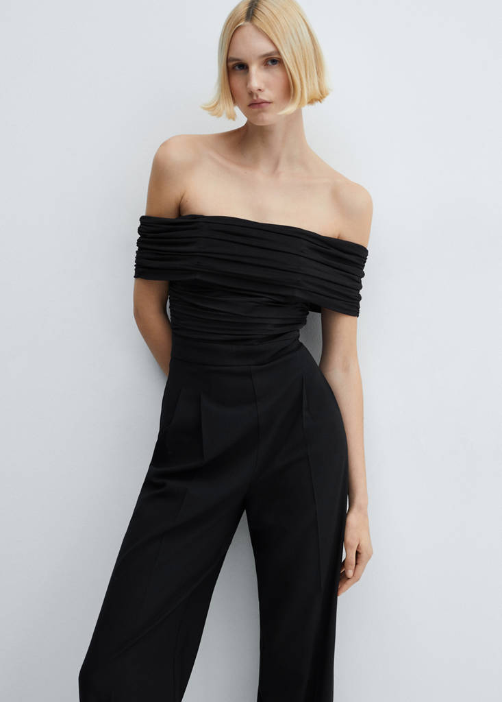 Schulterfreier Jumpsuit mit Raffdetail