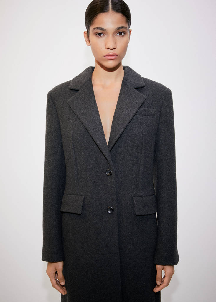 Beyond-Kollektion. Premiumqualität. Manteco-Gewebe aus italienischer Wolle. 100 % Wolle. Gerades Design. Langes Design. Hemdkragen mit Revers. Kerbrevers. Lange Ärmel. Brustleistentasche. Zwei Paspel- und Pattentaschen vorne. Zweiknopfverschluss vorne. Ziernähte. Futter. Die in diesem Kleidungsstück verwendete recycelte Wolle stammt aus natürlichen Wollfasern aus Pre- und Post-Consumer-Textilabfällen, die in neue Garne und Stoffe umgewandelt werden