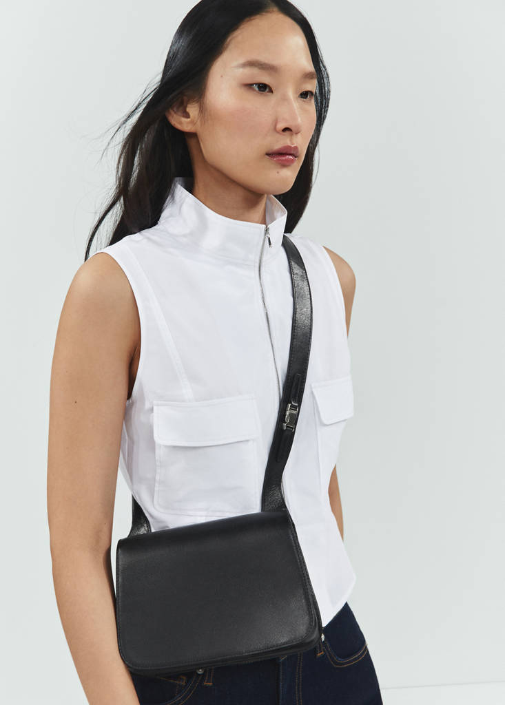 Mittelgroß. 100 % Rindsleder. Nicht verstellbares Design. Langer Griff. Innentasche. Magnetverschluss. Metallic-Detail. Futter