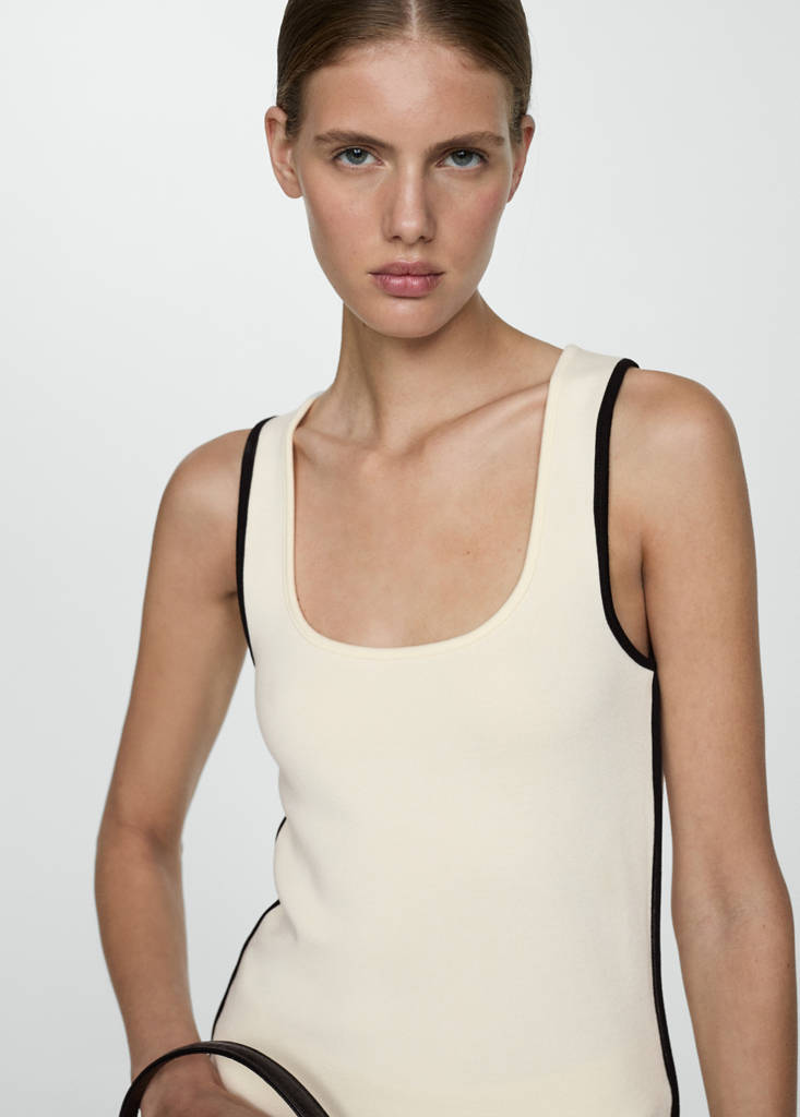 Feinstrick. Gerades Design. Rundhalsausschnitt. Breite Träger. Kontrastierende Paspelierung