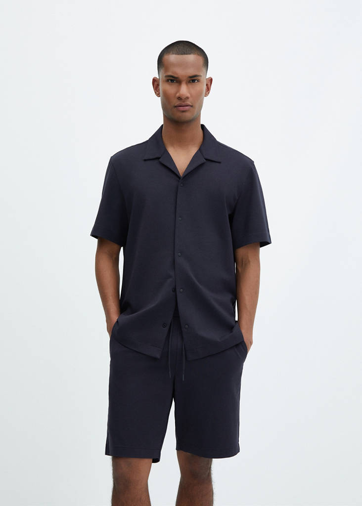 Performance-Kollektion. Easy Care: Die Stoffveredelung macht es einfach, das Kleidungsstück zu pflegen und zu bügeln. Gewebe mit UV-Schutz. Anti-Odour-Stoff: Die chemische Ausrüstung des Stoffes eliminiert Bakterien und Gerüche. Druckknopfverschluss an der Vorderseite. Bowlingkragen. Kurze Ärmel. Gerader Saum