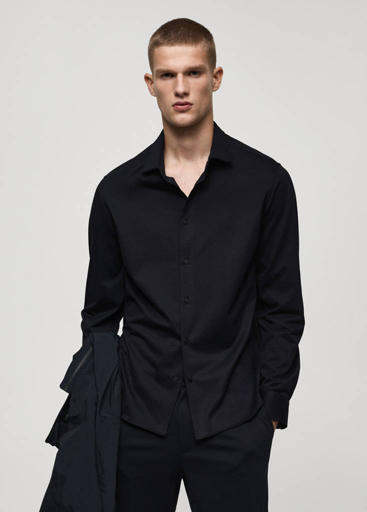 Performance-Kollektion. Wrinkle free: knitterfreies Gewebe. Comfort Stretch: Stretch-Stoff für zusätzlichen Komfort. Anti-Odour-Stoff: Die chemische Ausrüstung des Stoffes eliminiert Bakterien und Gerüche. Regular Fit. Gewebe mit Mikrostruktur. Hemdkragen. Wärmeregulierend: Dieses Gewebe bietet optimale Atmungsaktivität, um Ihre Körpertemperatur konstant zu halten. Abgerundeter Saum. Geknöpfter langer Ärmel. Vorderer Verschluss mit Knöpfen. Komfort: Dieses Kleidungsstück bietet Ihnen volle Bewegungsfreiheit und kehrt in seine ursprüngliche Form zurück