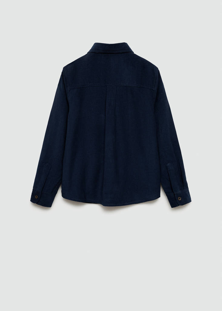 Zurück zur Schule Kollektion. Cord. Aufgesetzte Brusttasche. Geknöpfter langer Ärmel. Hemdkragen. Gerades Design. Vorderer Verschluss mit Knöpfen