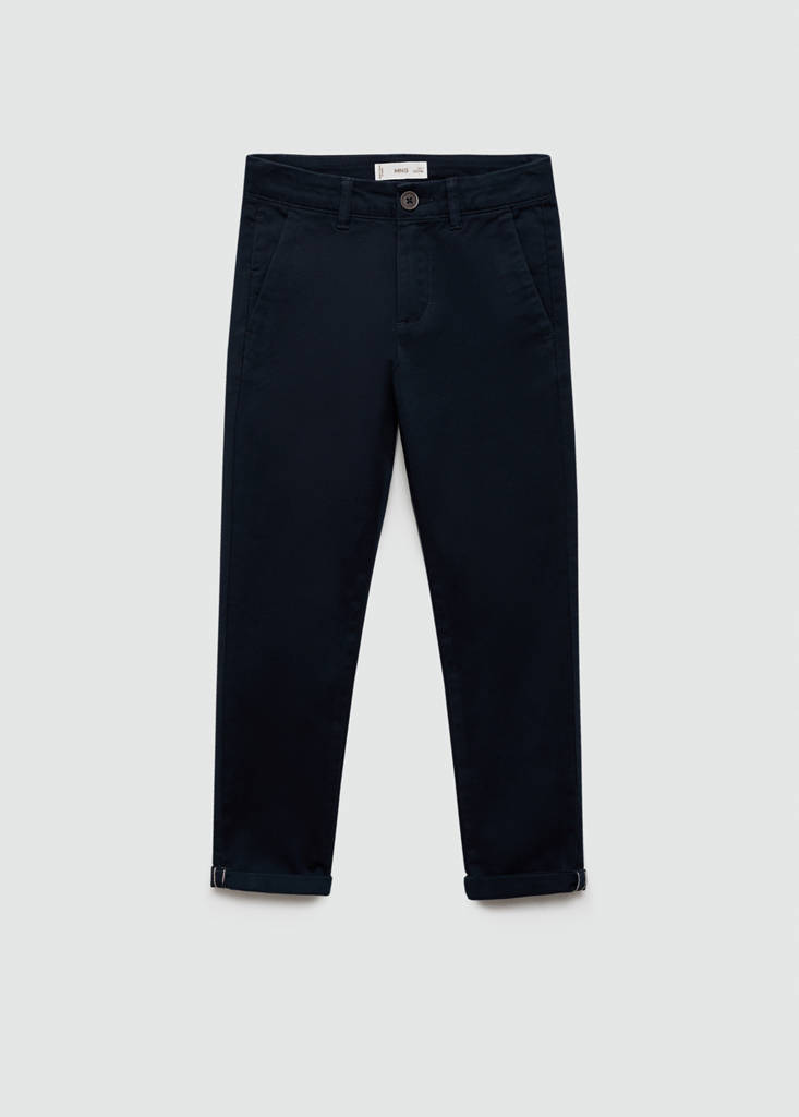 Zurück zur Schule Kollektion. Basics-Kollektion. Gerades Design. Langes Design. Chinohose. Mittlere Bundhöhe. Slim Fit. Zwei seitliche Taschen. Reißverschluss und Knopfverschluss. 100% Baumwolle