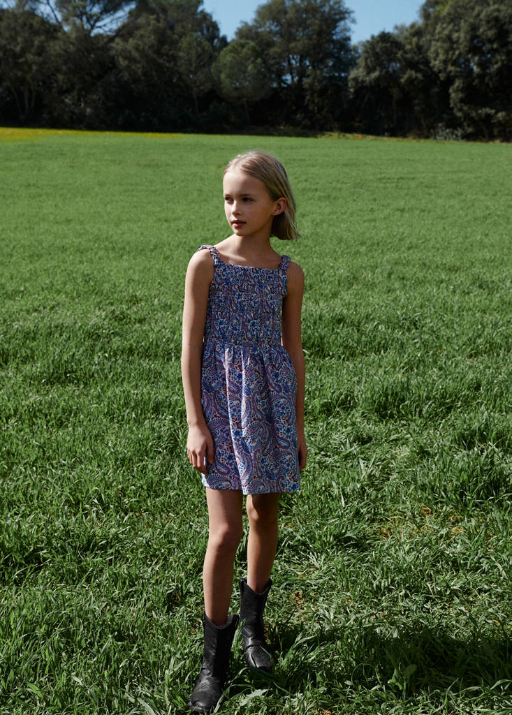 100% Baumwolle. Paisley-Print. Gerades Design. Kurzes Design. Gerüschte Details. Geraffte Träger. Quadratischer Ausschnitt. Ärmellos