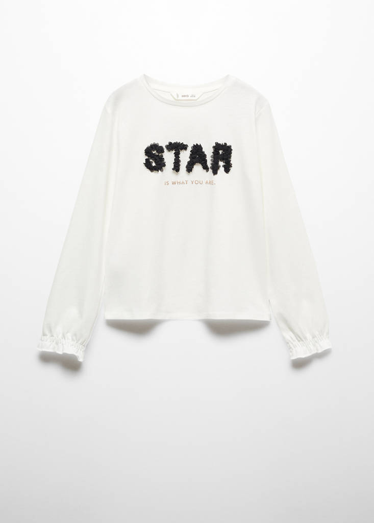 100% Baumwolle. Bedruckte Botschaft. Stickdetail. Gerades Design. Ärmelbündchen mit Raff-Details. Lange Ärmel. Rundhalsausschnitt