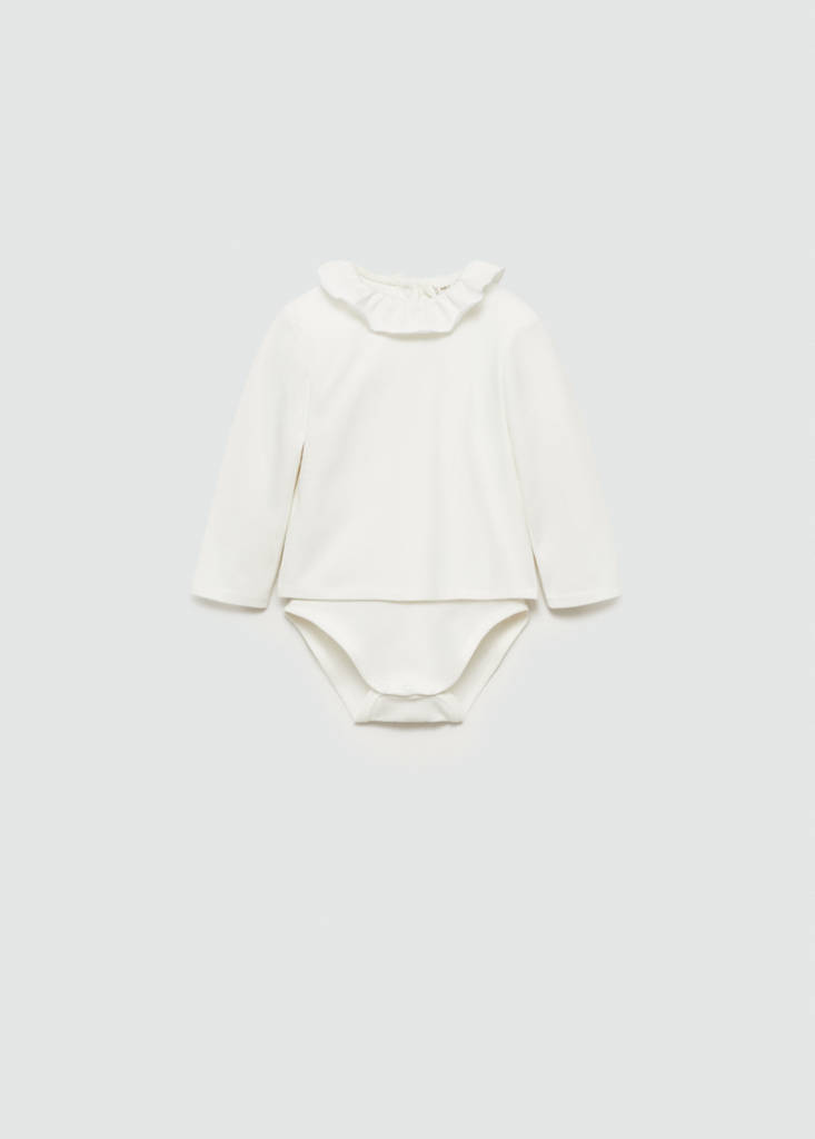 Stoff mit Baumwollanteil. Gerades Design. Body mit Rüschenkragen. Lange Ärmel. Druckknopfverschluss. Set erhältlich als Total-Look