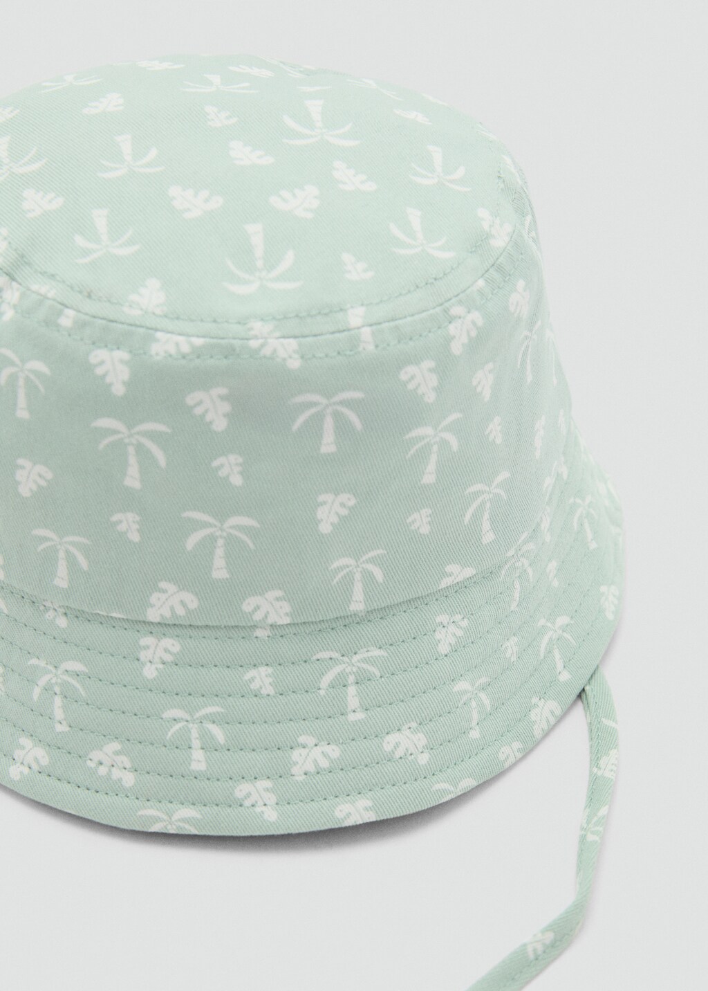 Bucket hatPrice historyInitial price struck through [kr 129 ]kr 129Current price [kr 99 ]kr 99-23%Select a colourAqua GreenSelect your size1-3 years (50cm)Not available. I want it!3-5 years (52cm)Last few items!Size guideAddDescriptionPalm tree print. Drawstring closure.See detailsShare