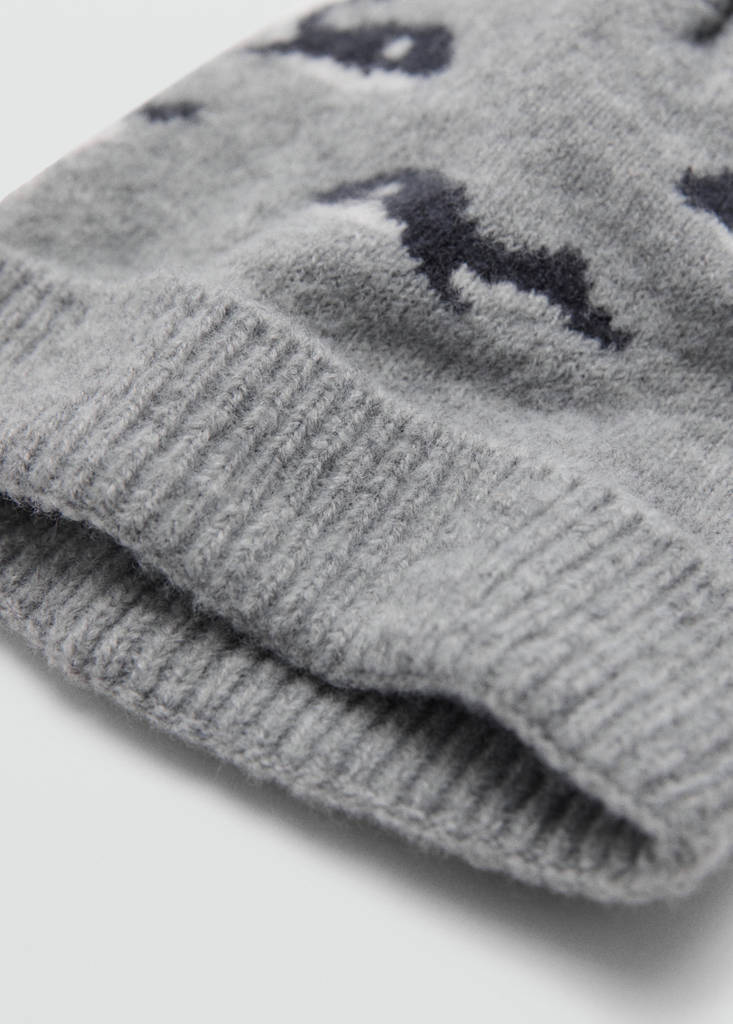 Back to school. Knitted fabric. Animal design. Whales print. Tassel detail. Turn-up detail. Set Available. This hat has a matching scarf available