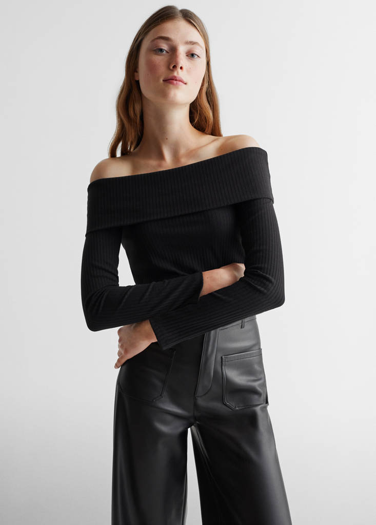 Boat neck t-shirtPrice historyInitial price struck through [kr 199 ]kr 199Current price [kr 159 ]kr 159-20 %Select a colourBlackSelect your sizeXXSNot available. I want it!XSNot available. I want it!SNot available. I want it!MNot available. I want it!LNot available. I want it!DimensionsNotify meOff shoulder. Long sleeve. Rib knit fabric. Slim fit. Cropped design. The model is 172 cm tall and is wearing a size MDetails, composition and careStore availability