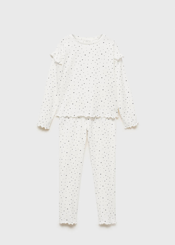 T-shirt and pyjama trousers set. Long design. Round neck. Long sleeves. Ruffle detail. Elasticated waistband. 100% Cotton. Star print. Straight design