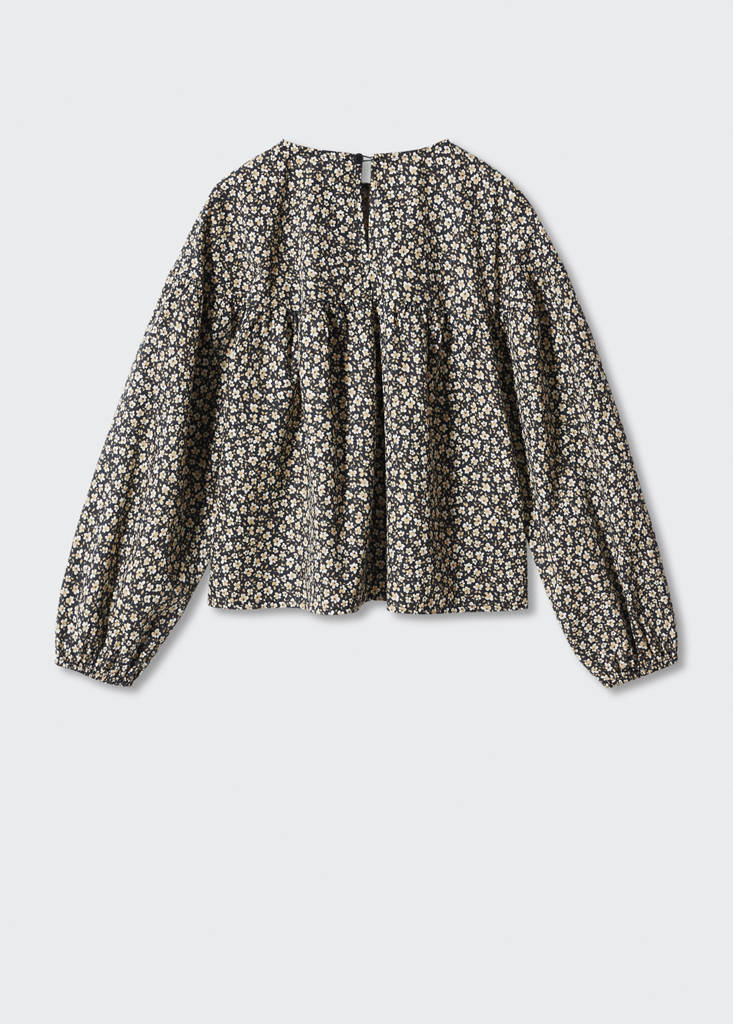 100% Cotton. Flowers print. Evasé design. Rounded neck. Long sleeve. One button fastening