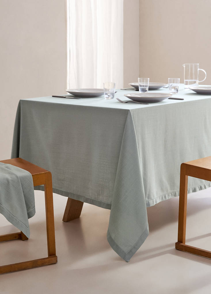 100% Cotton. Size: 170x350cm. Embroidered finish. Hemstitch embroidery. The best fabrics to set the table and share mealtime with your loved ones. Napkins available. Serves 8 to 10 people. Christmas Collection. Machine washable up to 40°C. Iron at a maximum of 200°C. Do not use bleach. Tumble dry allowed