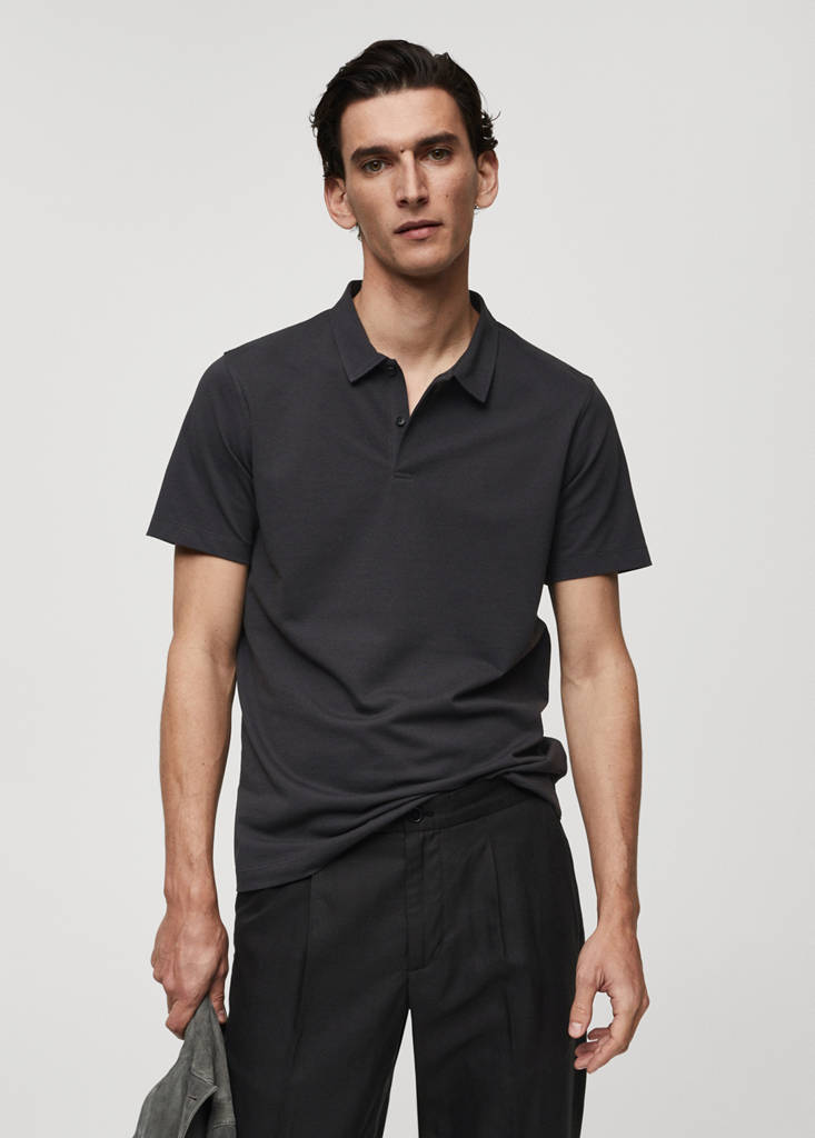 Khaki is an online exclusive. ESSENTIALS: Made to last. Slim fit. Cotton blend fabric. Polo collar. Button fastening at the neck. Short sleeves. Straight hem