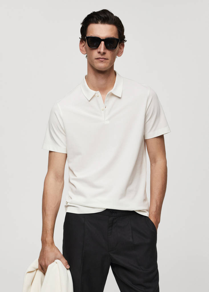 Khaki is an online exclusive. ESSENTIALS: Made to last. Slim fit. Cotton blend fabric. Polo collar. Button fastening at the neck. Short sleeves. Straight hem