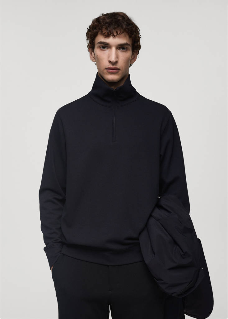 Performance Collection. Quick Dry. UV protection fabric. Anti Odour fabric: The chemical finish of the fabric eliminates bacteria and odours. Slim fit. Fabric with microstructure. Funnel neck with zip fastening. Long sleeves with elastic cuffs. Straight hem
