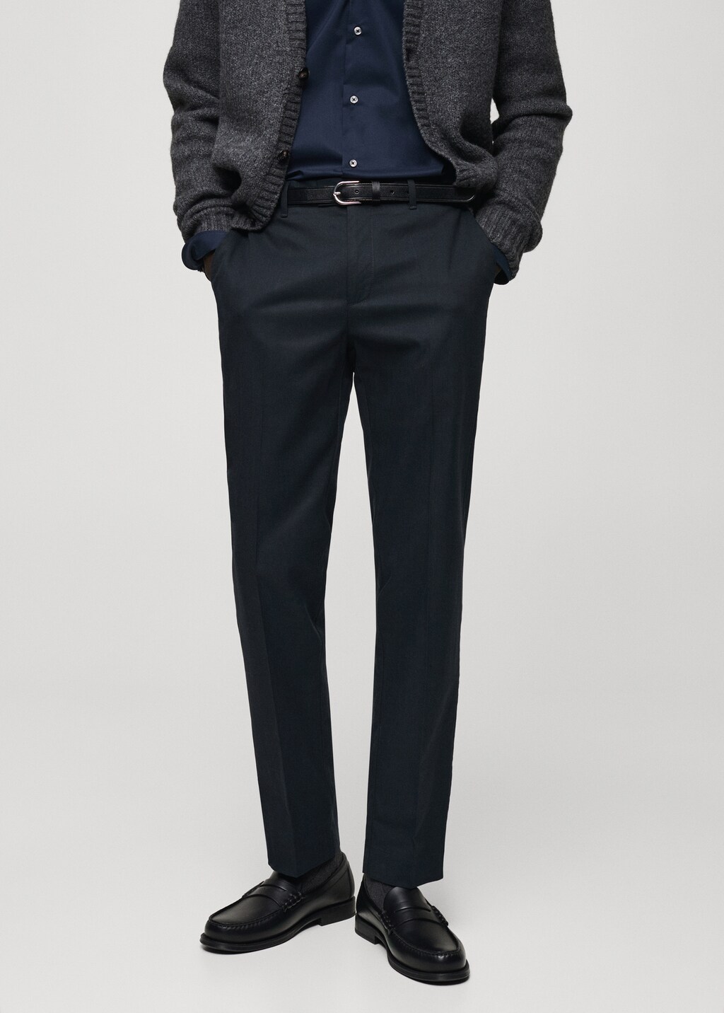 ESSENTIALS: Made to last. Regular fit. Cotton fabric. Mid-rise. Ironed stripe detail at front and back. Adds a natural and elegant touch to any space with its versatile and functional design. Perfect for keeping your home stylishly organised. Belt loops. Two side pockets. Two welt pockets with button at the back. Straight hem.