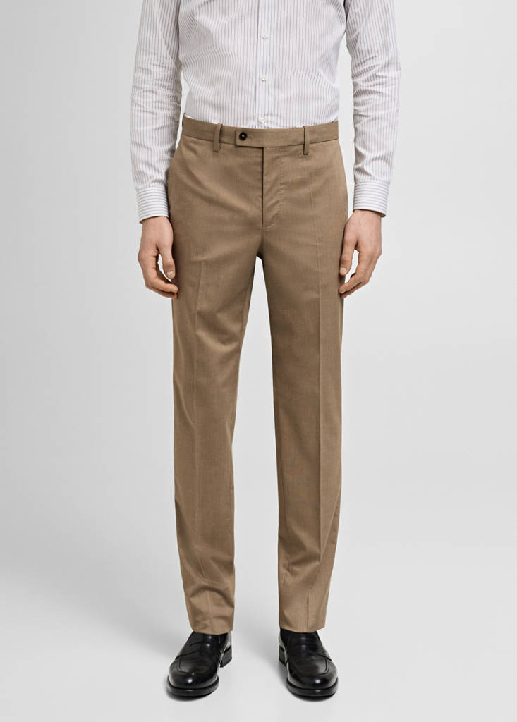 Slim fit. Tailoring collection. Belt loops. Front fastening with double-breasted buttons and zip. Two side pockets. Two welt pockets with button at the back. Pressed crease detail at the front and back