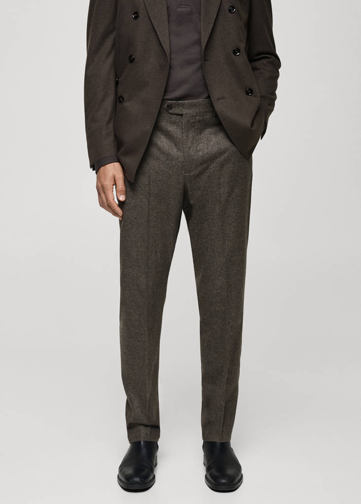 Selection Collection. Virgin wool blend fabric. Size: 29x29x29cm. Micro houndstooth print. Pressed crease detail at the front and back. Button, hook and zip front closure. Belt loops. Two front pockets. Two welt pockets with button at the back