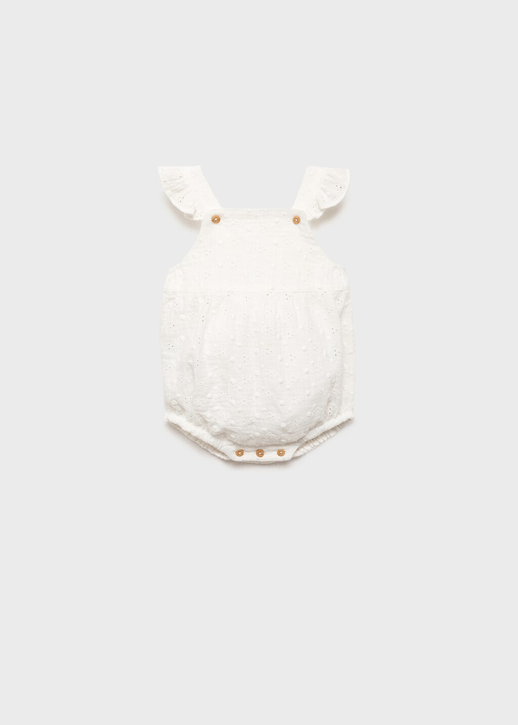 Straight Design. Straps with button closure. Elastic finish. Button up. Embroidered details.
