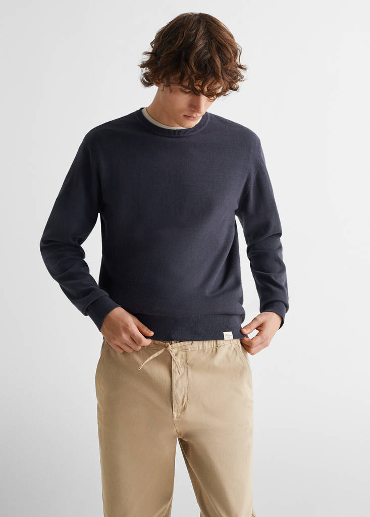 Cotton fabric. Straight design. Long design. Jogger design. Two pockets with flaps. Elasticated waistband. Drawstring closure