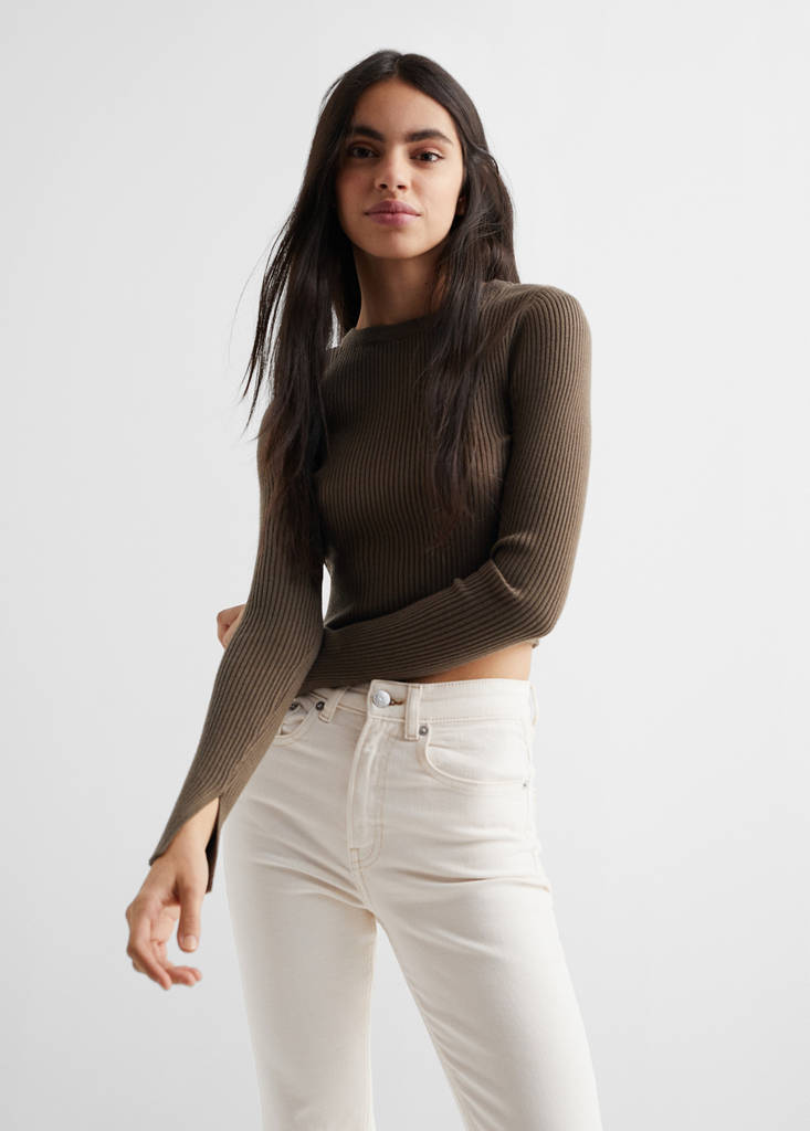 Cropped ribbed sweaterPrice historyInitial price struck through [kr 269 ]kr 269Current price [kr 209 ]kr 209-22 %Select a colourKhakiSelect your sizeXXSNot available. I want it!XSNot available. I want it!SNot available. I want it!MNot available. I want it!LNot available. I want it!DimensionsNotify meRibbed design. Straight design. Rounded neck. Long sleeves with slitDetails, composition and careStore availability