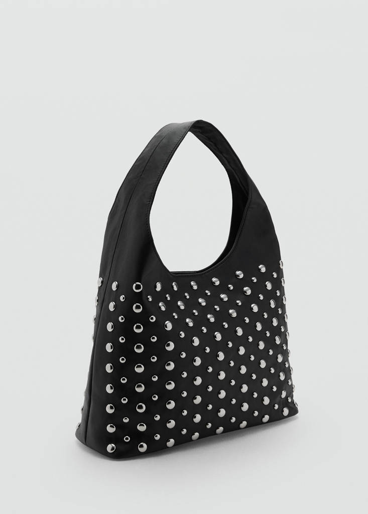 Faux leather. Leather-effect fabric. Bucket design. Stud detail. Shoulder strap. One press stud fastening