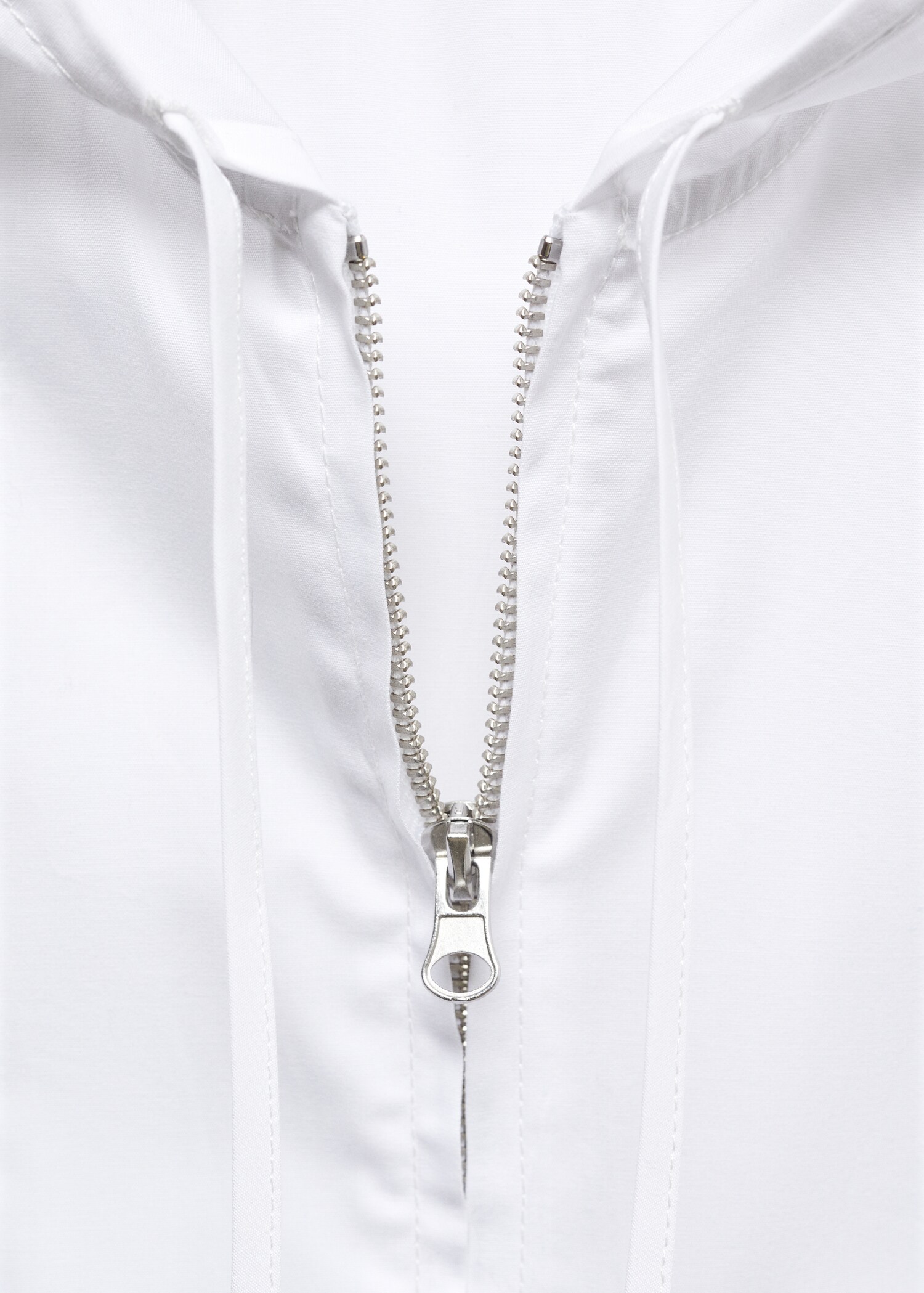 A-line design. Midi design. Round neck. Sleeveless. Front zip closure. Adjustable hood. Stitching detail. Festival Season. 100% cotton fabric.