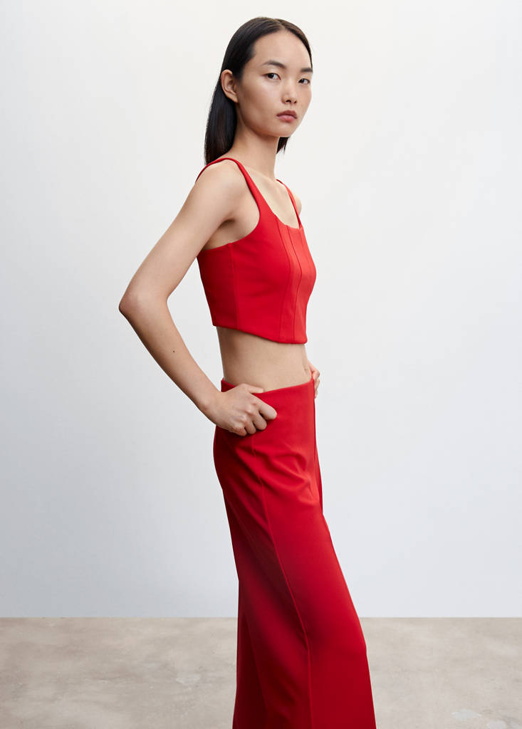 Flowy fabric. Corset style. Short design. Fitted design. Square neckline. Straps. Co-ord